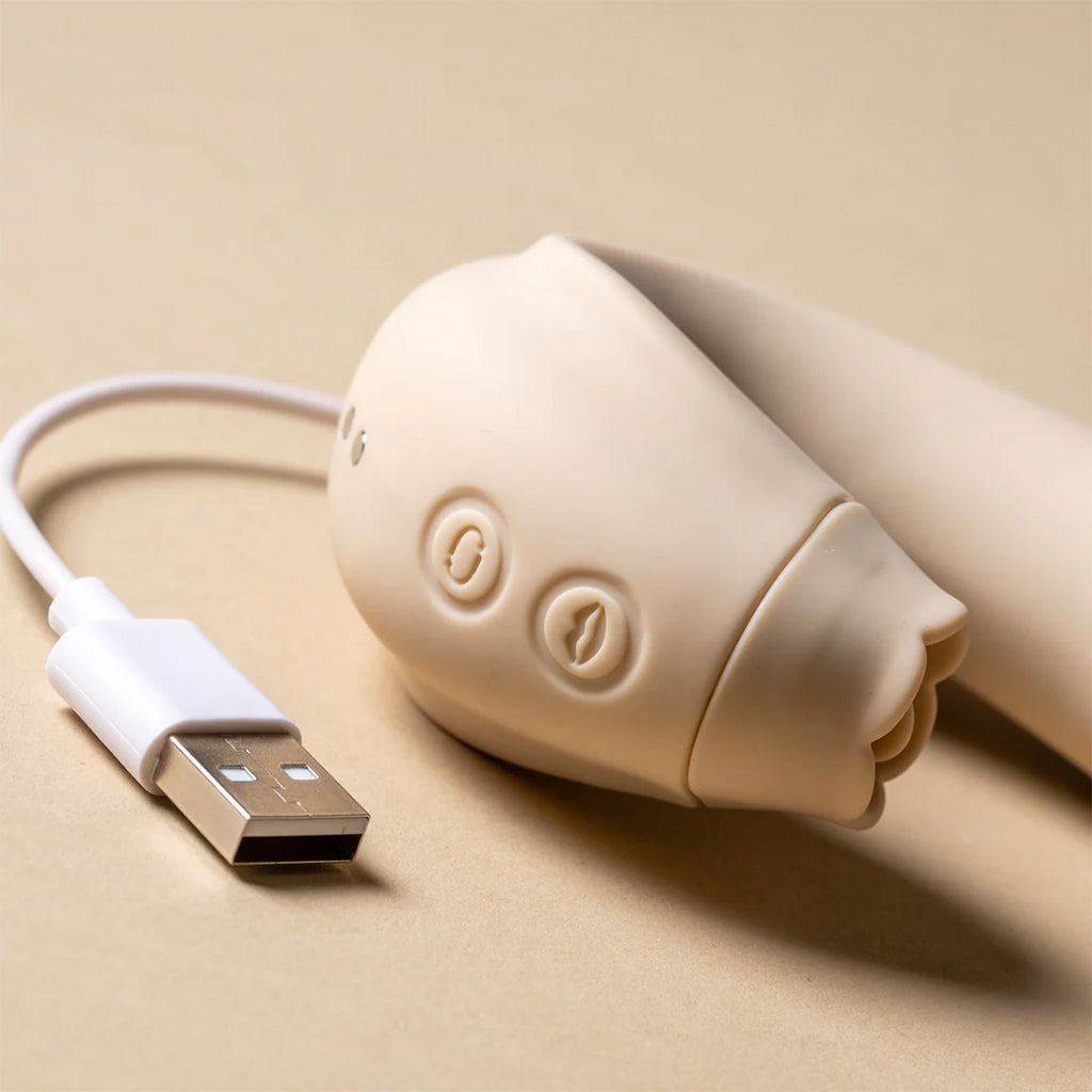 The Triple Vibe is a dual-headed massager that offers both internal and external stimulation. While your clitoris gets some love, the thrusting vibrator will give your g-spot the attention it needs. Made of flexible silicone, this vibe will make you go numb from pleasure. The rotating, licking and vibrating functions are independently controlled, but are able to be used simultaneously. It feels great on the skin and works with water-based lubricants. Plus, it's waterproof for easy cleaning and shower use! A quick 120-minute charge gives you up to 50 minutes of playtime, providing reliable and rechargeable pleasure wherever you are.